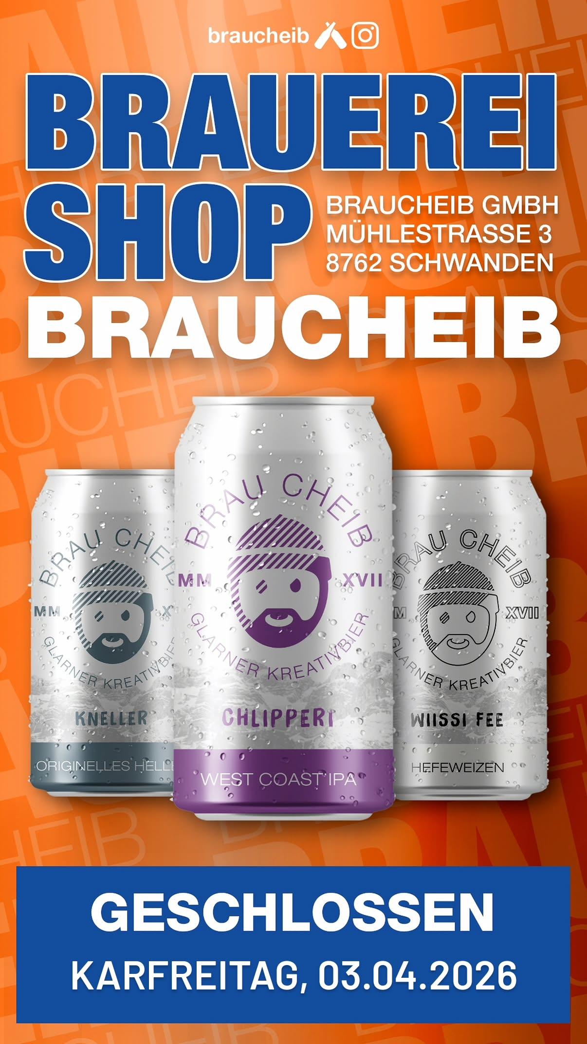 Am Karfreitag bleibt der Brauereishop geschlossen. Dafür kannst du dich am Vortag, den 2. April 2026, von 16.00 bis 19.00 Uhr für Ostern mit Glarner Kreativbier und bierigen Ostergeschenken eindecken.