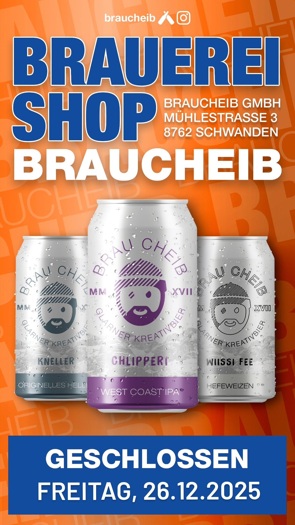 Der Brauereishop bleibt am Freitag, 26. Dezember 2025, aufgrund eines kantonalen Feiertages geschlossen.